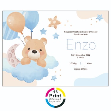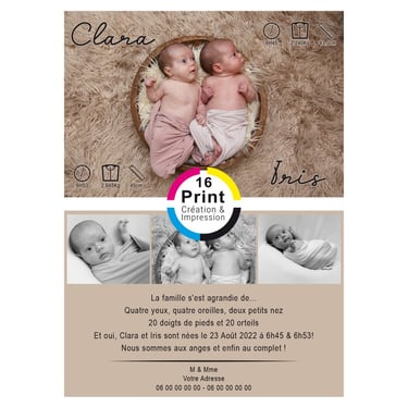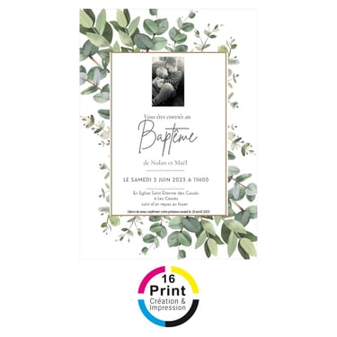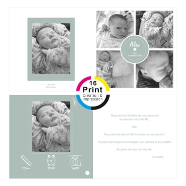 Chez 16 Print, nous sommes heureux de participer à la célébration de moments spéciaux, que ce soit la naissance d'un nouveau-né, le baptême ou un anniversaire. Notre service de création et d'impression d'invitations personnalisées offre une personnalisation minutieuse pour capturer la beauté de chaque événement unique. Que vous choisissiez parmi nos modèles existants que nous personnalisons avec soin, ou que vous ayez repéré le design parfait en ligne, nous nous engageons à créer des faire-part et invitations uniques. Des designs doux et uniques, combinés à une qualité d'impression exceptionnelle, font de chaque invitation une véritable œuvre d'art, immortalisant la joie de ces moments spéciaux dans votre vie.