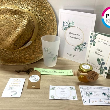 Rendez votre mariage inoubliable avec nos objets personnalisés, conçus pour apporter une touche unique et élégante à votre grand jour. Découvrez nos gobelets, faire-part, cartes menus, plans de table, cartes de jeux, chapeaux, petits pots souvenirs avec étiquettes imprimées, livrets, et bien plus encore. Chaque élément est soigneusement conçu pour refléter votre style et créer une ambiance mémorable. Personnalisez vos célébrations avec des détails qui vous ressemblent et laissez une impression durable à vos invités !